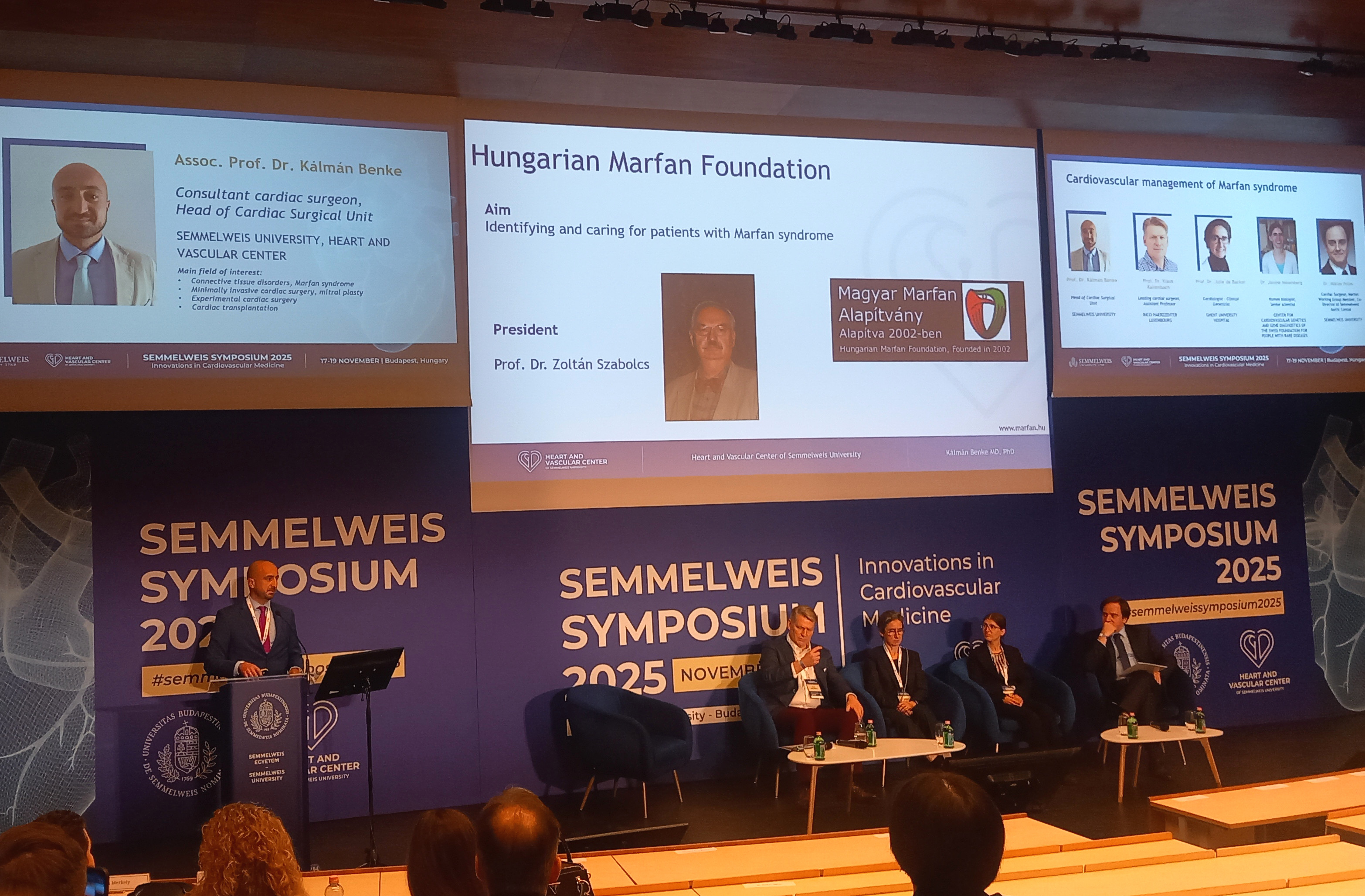 2025. november 17-19. között rendezték meg a 2025. évi, 33. Semmelweis Szimpóziumot, amely a Semmelweis Egyetem egyik legnagyobb hírű és presztízsű tudományos konferenciája. Az eseményen a Magyar Marfan Alapítvány munkatársainak szervezésében, a téma nemzetközileg elismert vezető szakértőinek bevonásával külön szekciót szenteltek a Marfan-szindróma kezelésével és kutatásával kapcsolatos eredmények megvitatására. Az Alapítvány képviseltében Dr. Benke Kálmán, előadóként, Dr. Pólos Miklós pedig moderátorként vett részt.